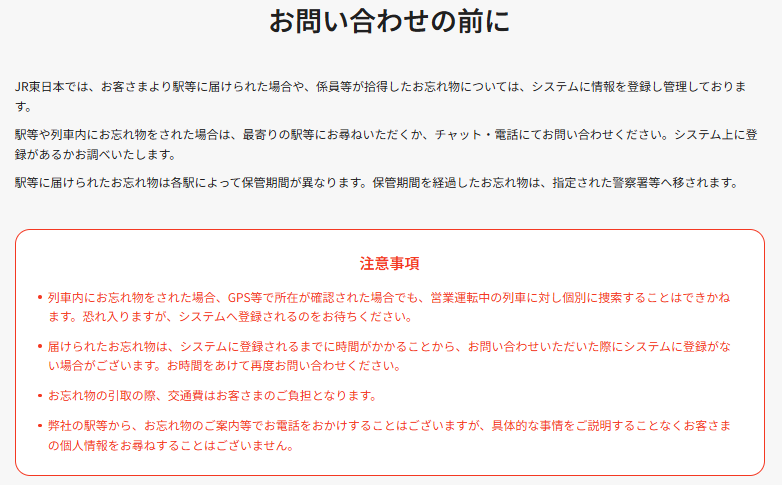 引用元:お忘れ物のご案内:JR東日本