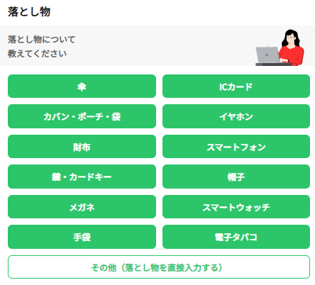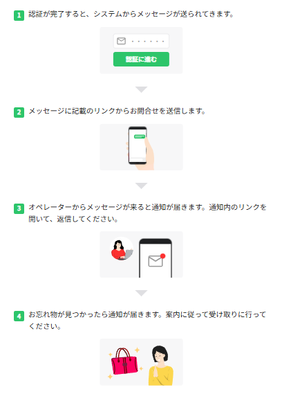 LINEやチャットで落とし物を探せるサービスです。