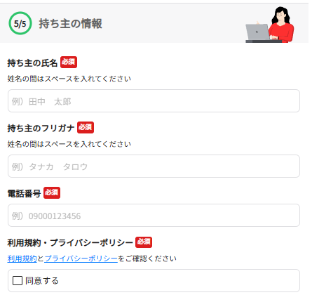 ⑥持ち主の情報を入力