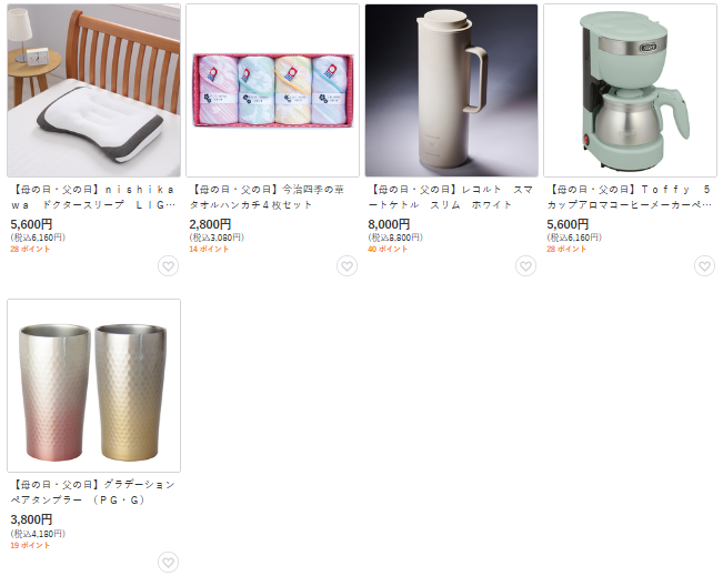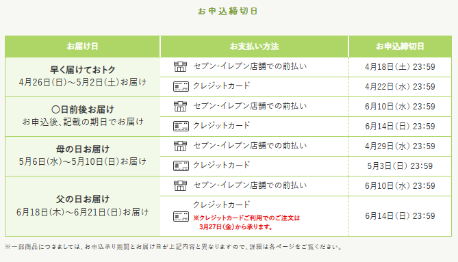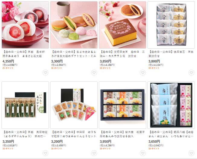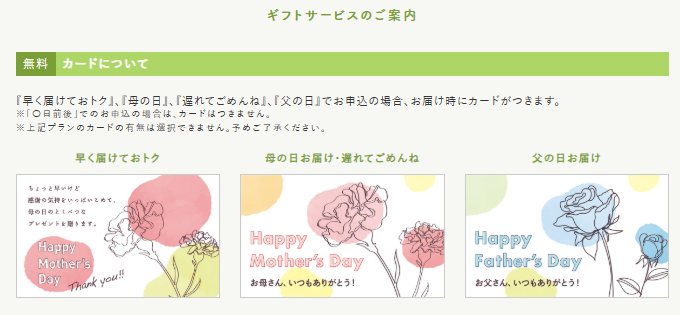 事前予約で母の日と父の日用にギフトをたくさん取り揃えています!