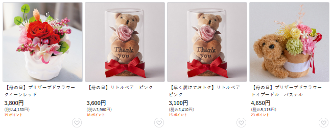 | プリザーブドフラワーアレンジ エイミー | 母 | 〇 | 4,950円 | |