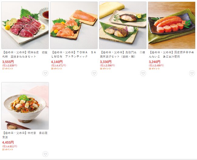 | ①②③④とカステラセット | 母 | 〇 | 4,980円 | |