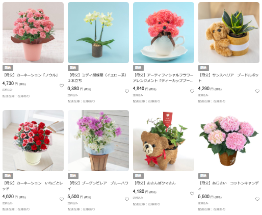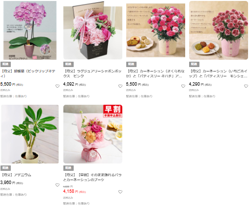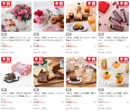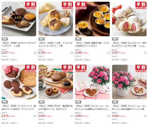 事前予約で母の日と父の日用にギフトをたくさん取り揃えています!