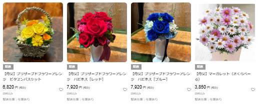 1,最近はカーネーション以外にも、バラ、紫陽花、ブリザーブドフラワー