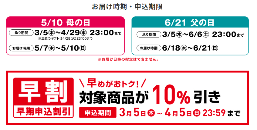 「母の日・父の日ギフト」予約承り中♪今年は早期特典が例年より更にお得です!!|ローソン公式サイト