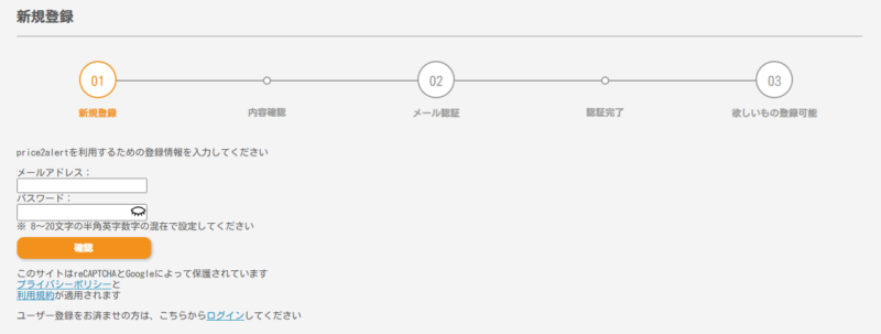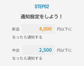 指定した価格まで下がったら通知を受け取る為の無料ツールです。
