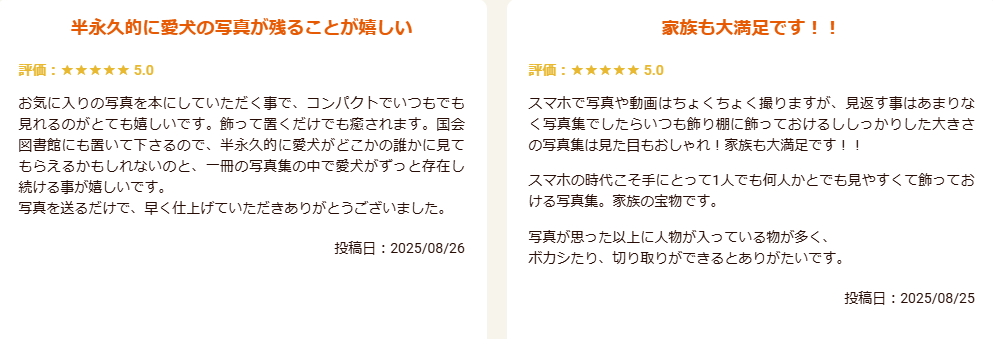 思い出を形として置いておくだけでなく、皆にも見せたいあの仕草や可愛い姿をSNSで投稿するのではなく写真集として見てもらえます。